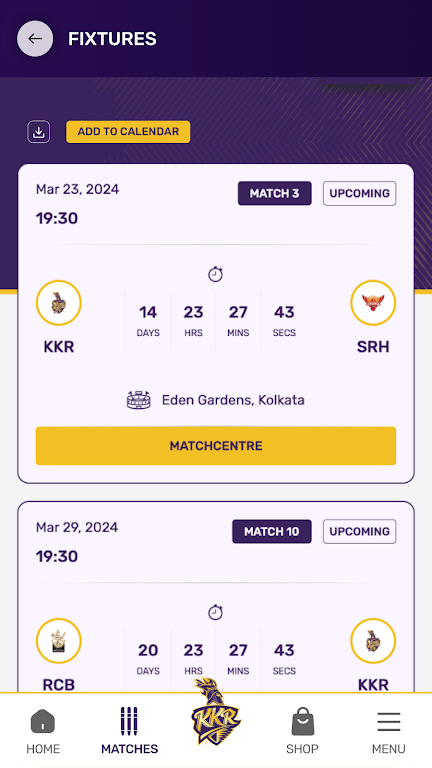 With exclusive rewards, interactive games, and comprehensive match coverage, Knight Club Official is the ultimate destination for all Kolkata Knight Riders fans. Stay engaged with the team on and off the field, earn rewards and prizes, and get an inside look at all the action throughout the season. Download the app now and join the Knight Club community today!
