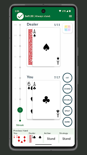 Features 1. Focused Basic Strategy Guidance: Learn the correct moves for every hand scenario.