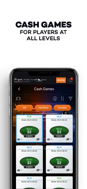 A: The app offers Texas Hold’em and Omaha in formats like cash games, Sit & Go’s, and multi-table tournaments.