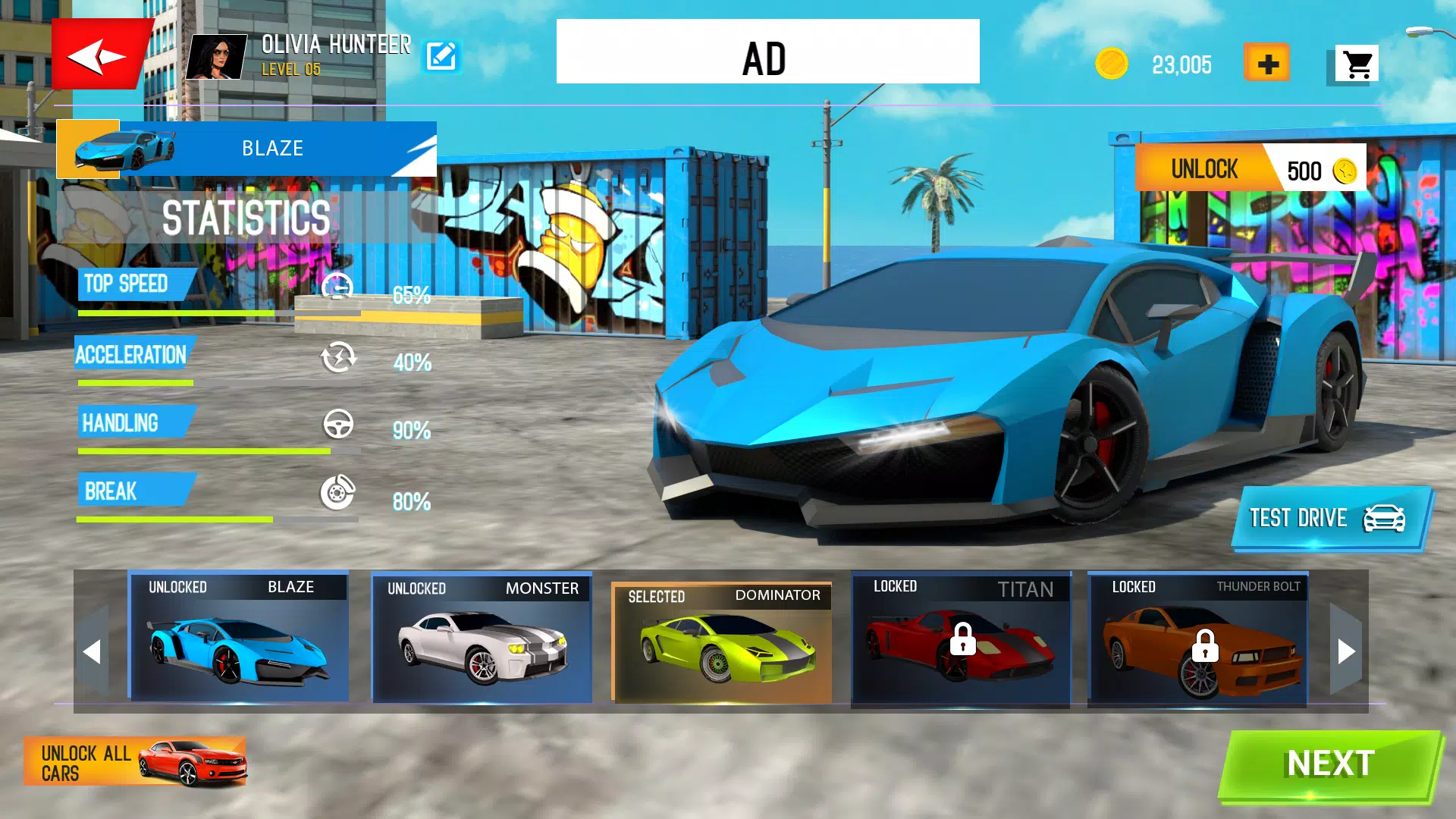 > Unlock new cars by winning rewards on successful completion of challenges.
