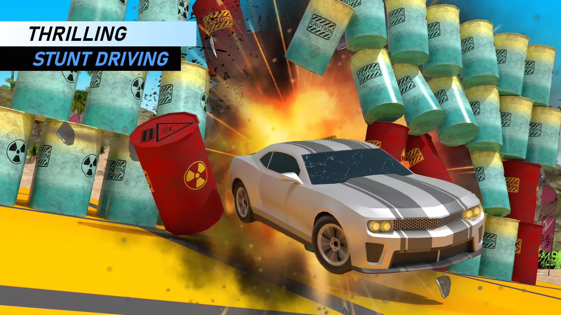 > Experience adrenaline-pumping world of extreme car stunts on mega ramp.