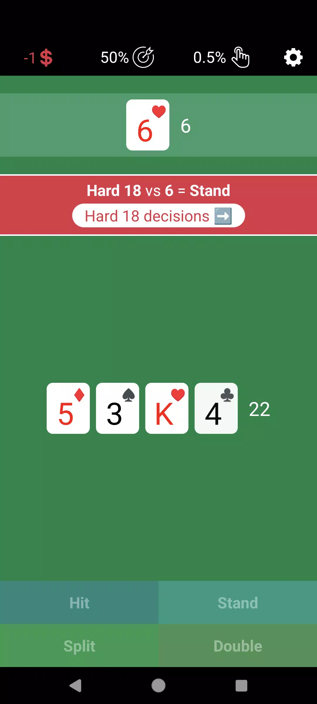 Looking to up your game and increase your chances of winning in Blackjack? Look no further than Blackjump! This handy app is designed to teach you the ins and outs of Blackjack basic strategy. By learning this statistical model of the best decisions to make based on your hand and the dealer's up card, you'll be well on your way to mastering one of the most popular card games out there. Whether you're a beginner looking to improve your skills or a seasoned player wanting to sharpen your strategy, Blackjump has got you covered. Win big and impress your friends with your newfound Blackjack knowledge!
