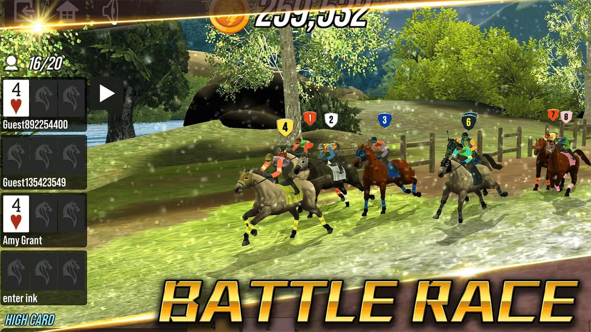 (Features 1) Live Real-Time Multiplayer Races: (Compete against real players worldwide) in fast-paced horse races that test your skills and timing.