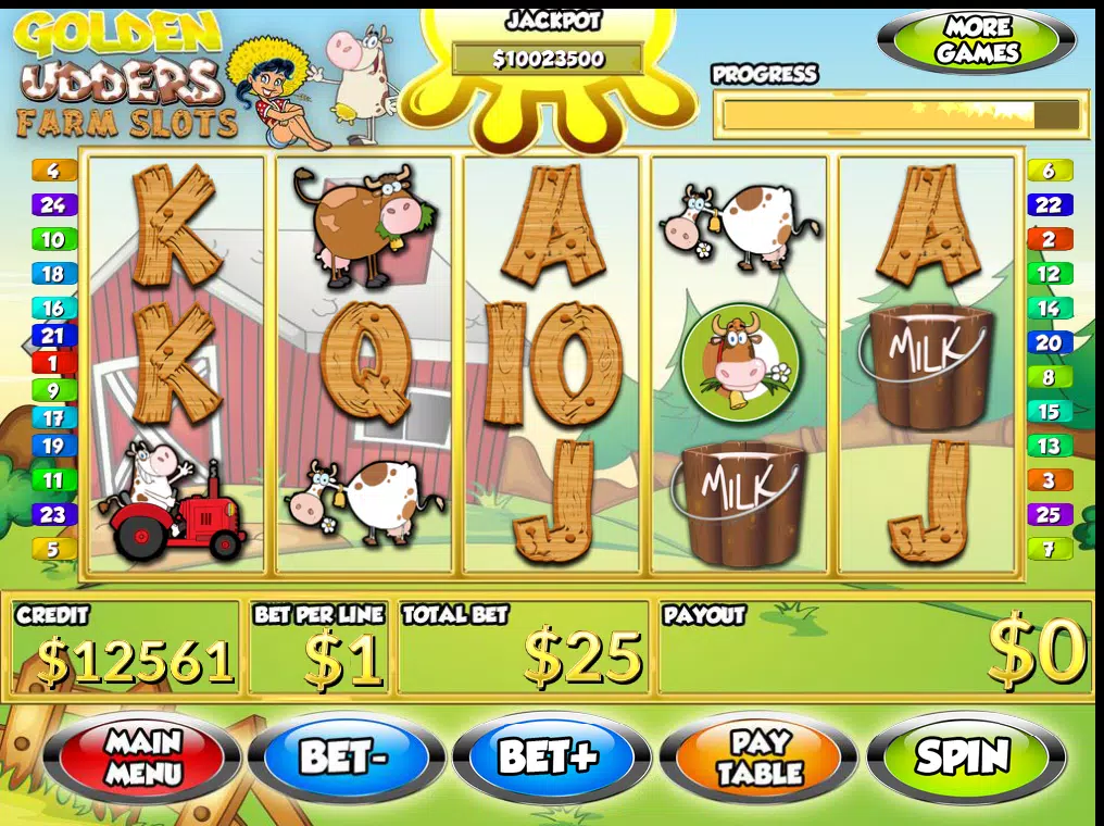 Welcome to Golden Udders Farm Free Vegas Slots, the wackiest and wildest slot machine experience on the market! This hilarious farm-themed slot game combines classic Vegas-style gameplay with barnyard humor, charming animals, and tons of chances to strike it rich. From spinning cowbell jackpots to udderly generous bonus rounds, Golden Udders Farm Free Vegas Slots is loaded with surprises, fun, and fortune!