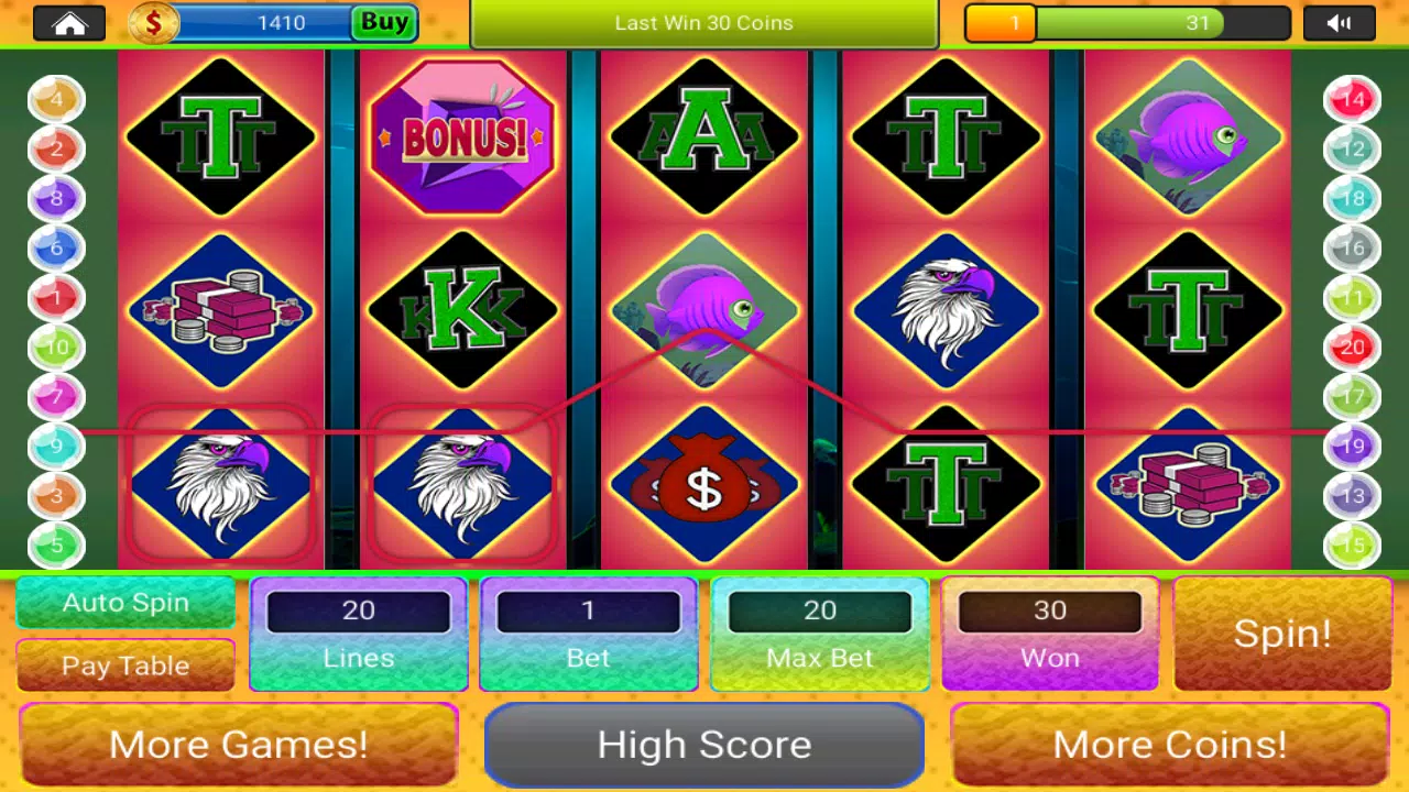 (Feature 1) Diverse Slot Machines: (With) multiple slot games featuring different themes, paylines, and jackpots.