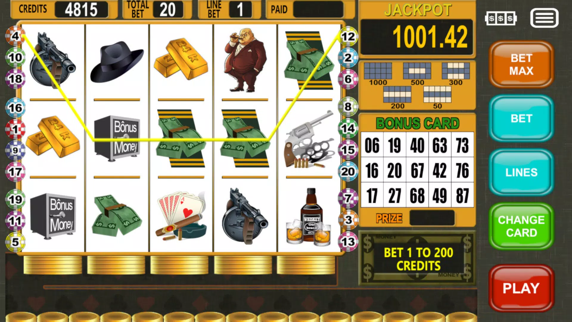 (Features 4) Wilds and Scatters with a Mob Twist: Use Mafia Boss Wilds to complete paylines and Scatter Briefcases to launch bonus games.