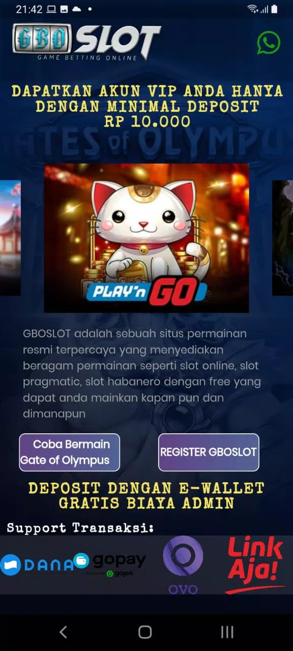 GBOSLOT: Slot Pragmatic Play Free APK is a fantastic choice for slot enthusiasts looking for high-quality gameplay and diverse slot themes straight from one of the top developers in the industry. With its free-to-play model, offline capabilities, and frequent updates, this app delivers a seamless and enjoyable casino experience on the go. Be sure to claim your daily bonuses, explore various slots, and use the playing tips to make the most of every spin. Ready to join the fun? Download the APK today and start spinning with GBOSLOT!