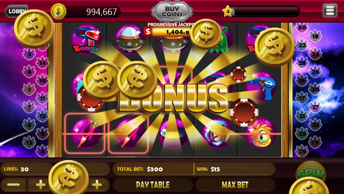 Feature 5 (Daily Bonuses and Challenges): Receive daily login bonuses, participate in challenges, and complete missions to earn extra coins and unlock new slots.