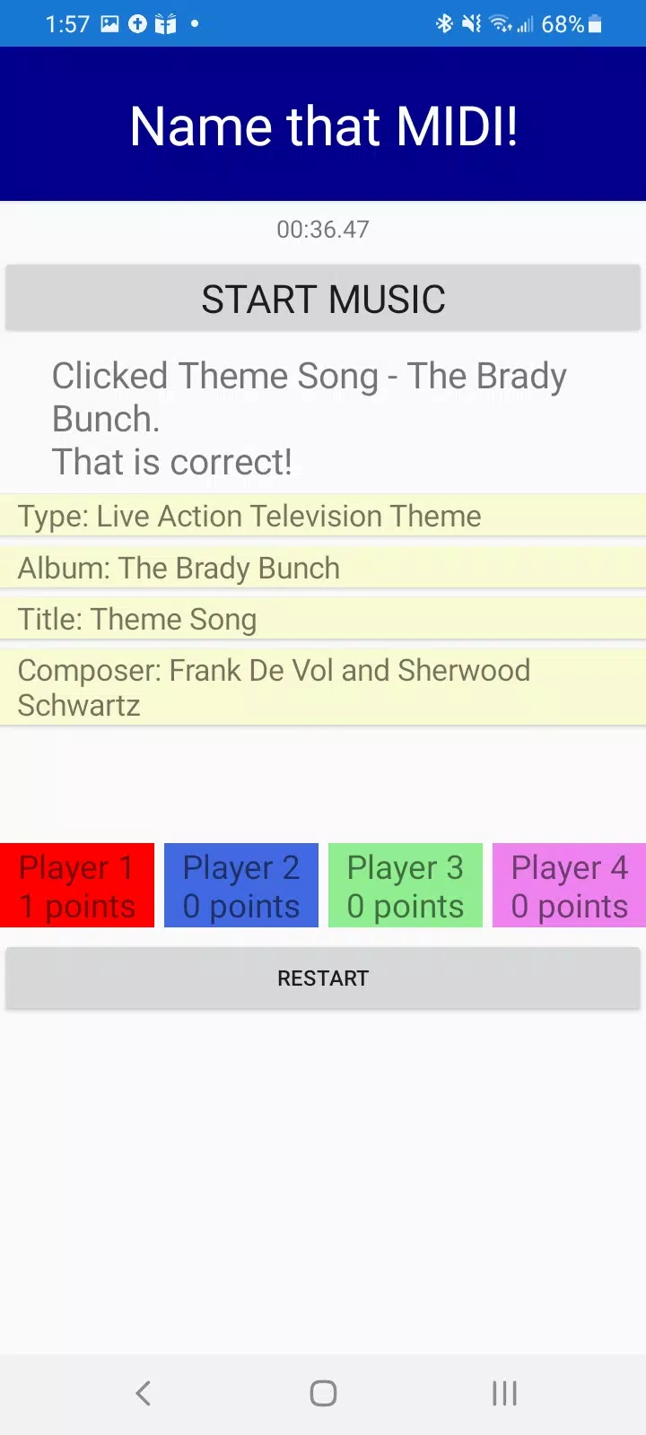 In conclusion, Name that MIDI is a exciting music trivia game with multiplayer capabilities, a variety of music categories, and a growing library of MIDI-type music. Download the app now to challenge yourself and your friends in naming classic tunes across various genres.