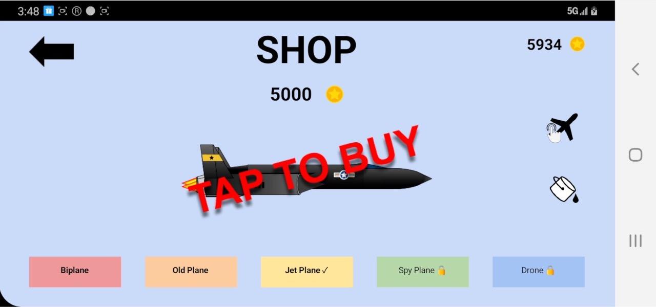 > Plane Customization: Personalize your plane with different colors and skins, allowing you to fly in style and stand out from the crowd.