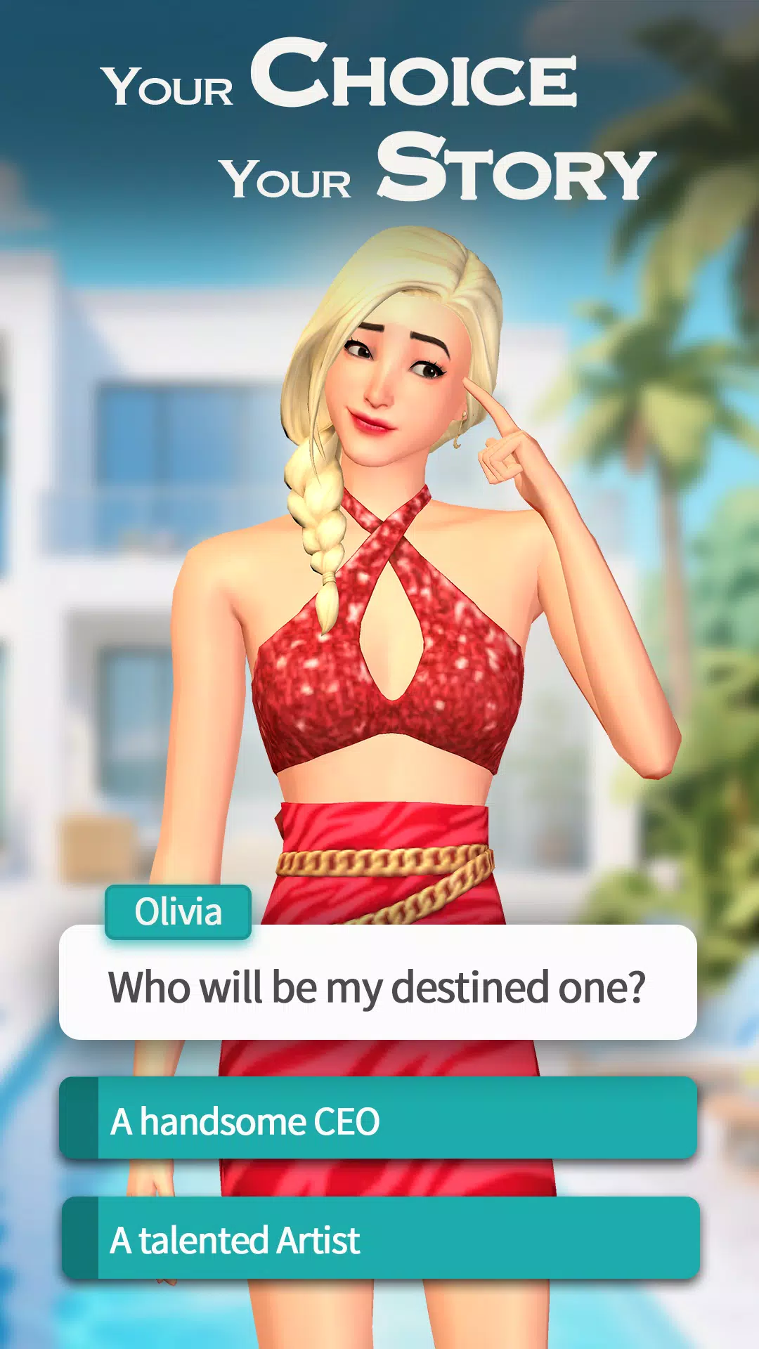 Introducing Olivia's Destiny: 3D Series, the ultimate interactive story game where you make the choices that shape Olivia's destiny. Immerse yourself in stunning 3D animated episodes filled with romance, love, and adventure, and watch as your decisions have real consequences on the outcome of the story. With the ability to customize Olivia's style, explore various plotlines, and unlock exclusive scenes and multiple endings, this game offers a unique fusion of drama series and choice-based gameplay. Download now to explore romance, drama, and adventure in a whole new way with Olivia's Destiny: 3D Series.