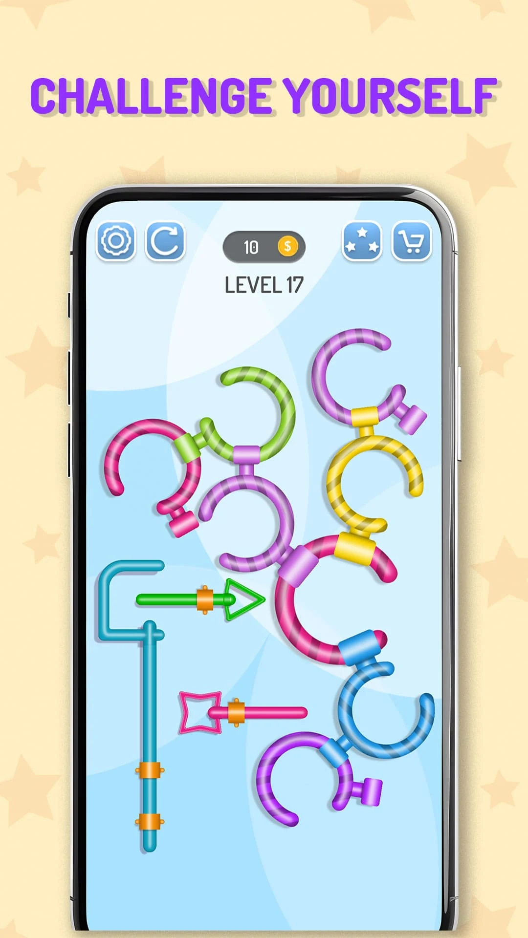 - Use your intellect to solve logic puzzles and untwine the circles to finish each level.