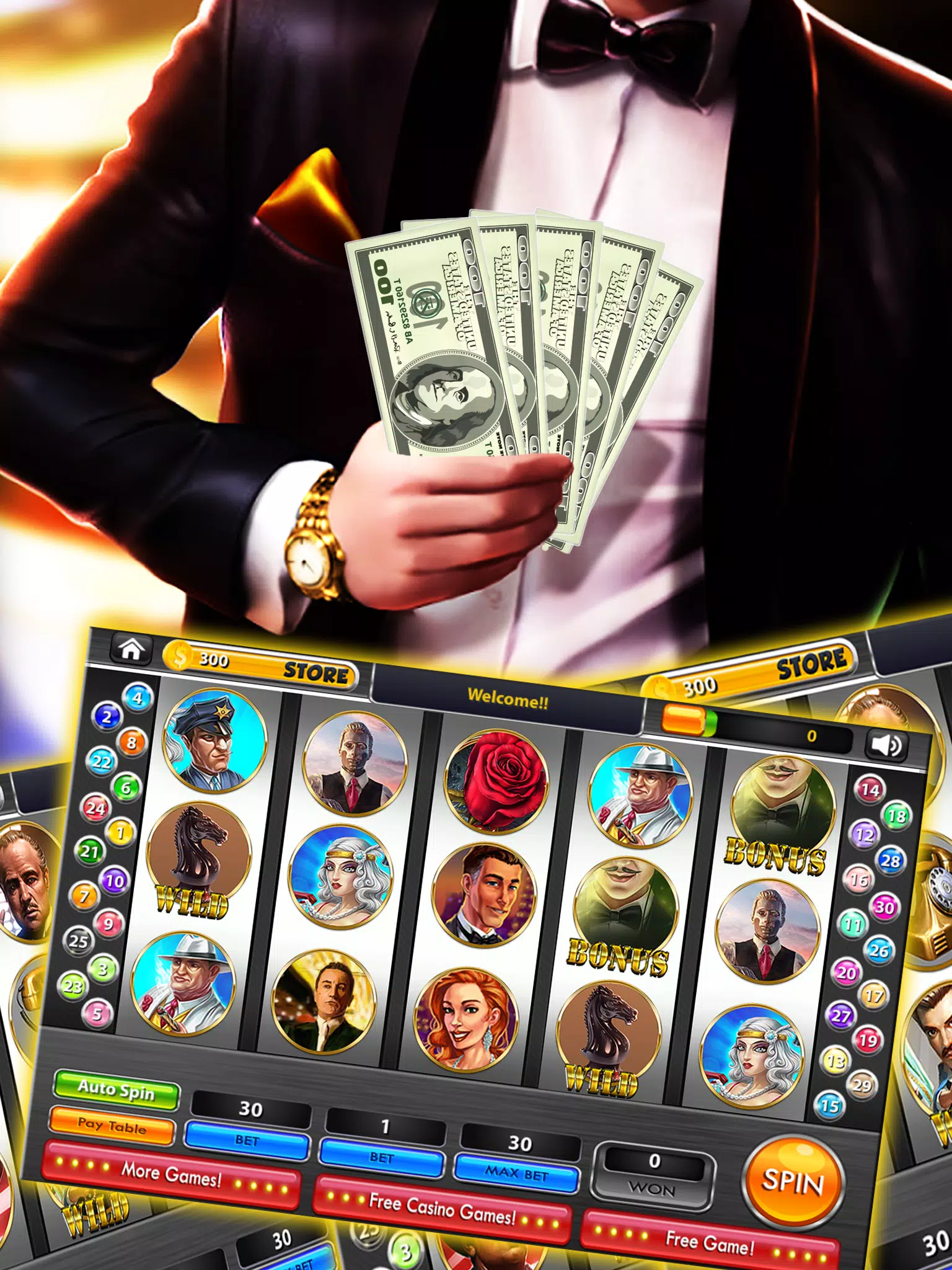 (Features 2) Multiple Slot Machines with Unique Paylines – Variety keeps the gameplay fresh with different machines to explore.