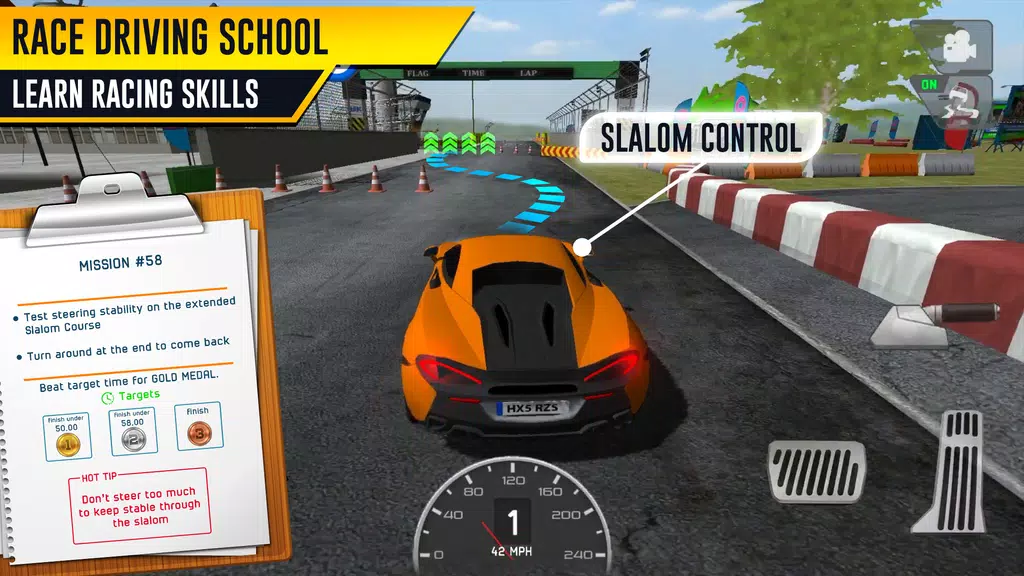 Experience the thrill of high-speed racing with the ultimate Race Driving License Test app! Train with your Virtual Driving Instructor to learn the ins and outs of handling 16 high-performance cars. Master the art of race driving through 64 challenging tests including slaloms, braking tests, and drifting lessons. Put your skills to the test on a realistic racing circuit with multiple layouts and varying grip levels. Collect and unlock faster cars as you earn medals and beat your Virtual Tutor on the road. With ultra HD graphics and free gameplay, Race Driving License Test is the perfect app for all racing enthusiasts!