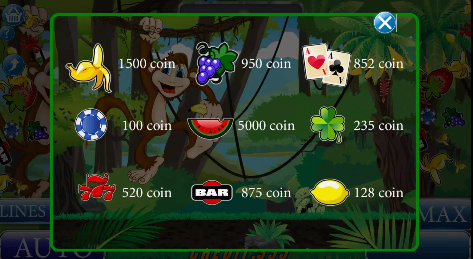 (Feature 2) Monkey-Themed Graphics & Animation: (Feature 2) Enjoy playful monkey characters, jungle backdrops, and funny fruit symbols that add personality and humor to every spin.