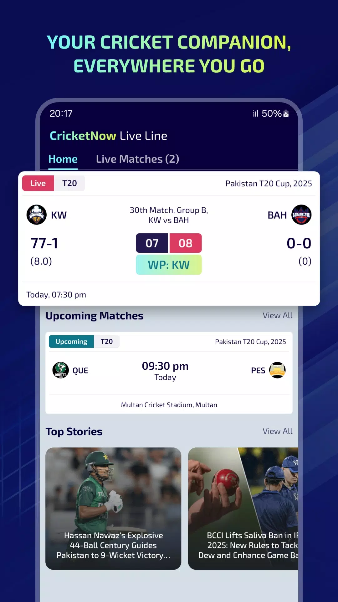 Introducing CricketNow Live Line - the ultimate app for all cricket fans! Stay updated with live match scores, commentary, stats, and analysis in both Hindi and English. Get ball-by-ball updates, detailed scoreboards, live sessions, and accurate odds for ODI, T20, Test matches, and leagues like IPL 2025, PSL, and more. Experience the thrill of live matches with real-time scores and expert analysis. Keep track of your favorite team and players with match alerts, player details, and international rankings. Don't miss out on any cricket action - download CricketNow Live Line now on the Google Play Store and enjoy the excitement of every game!