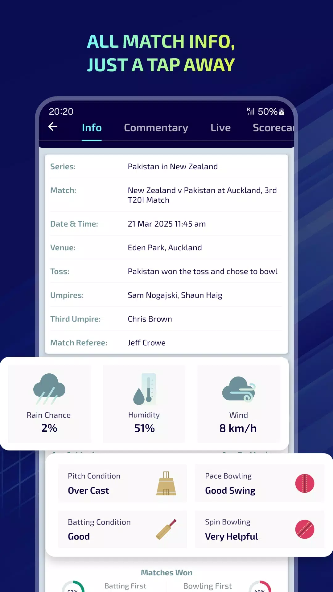 ⭐ Ball-by-ball live match score: Stay updated with every moment of the game.