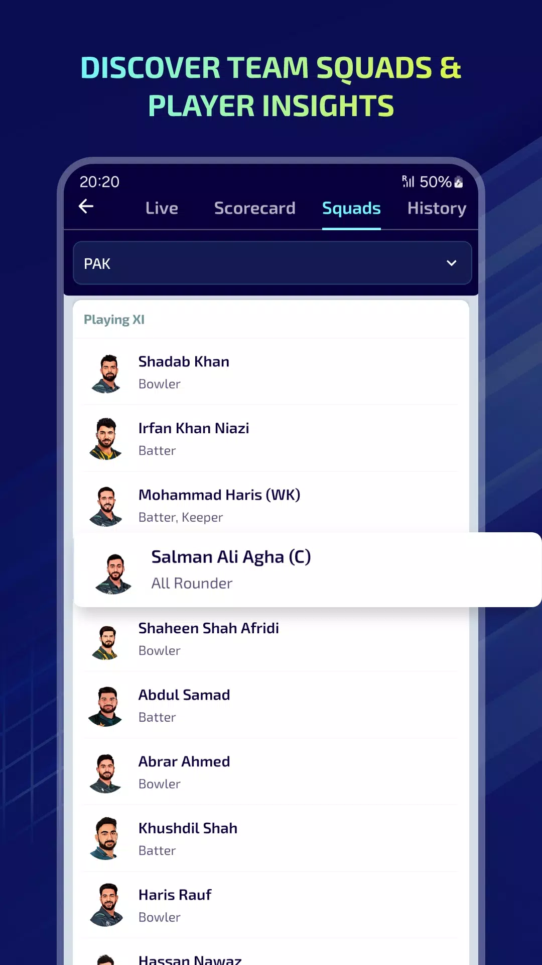⭐ All cricket player's details: Get to know about your favorite players.