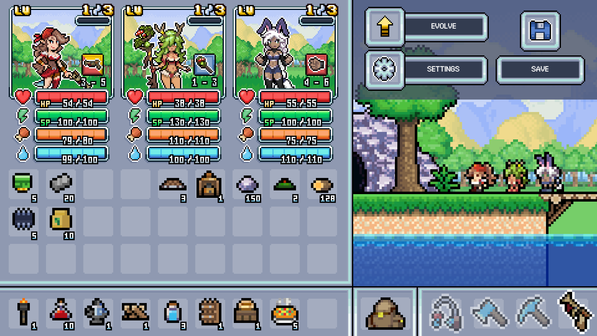 - Gather resources like wood, stone, and ores to upgrade heroes