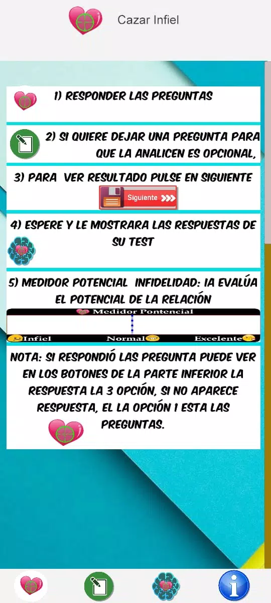 In conclusion, this Cazar Infiel App offers users a unique and innovative way to determine the likelihood of infidelity in their relationships. With its use of artificial intelligence and behavioral studies, users can receive personalized analysis and insights into their partner's fidelity. By answering questions sincerely and examining the results over time, users can gain a better understanding of their relationships and potential areas of concern. Download now to start uncovering the truth in your relationship.