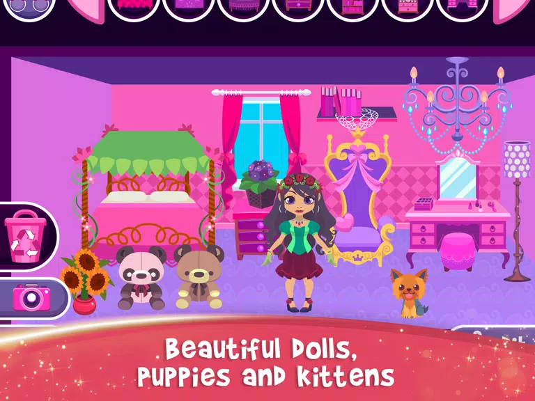 Become the princess you've always dreamed of with this enchanting App! Design and dress your very own princess, from her hairstyle to her shoes and jewelry, in the exclusive beauty salon. Choose your favorite castle and decorate it with over a hundred different items, including cute dolls, puppies, and kitties. Let your creativity run wild as you create stunning living rooms, bedrooms, and more! Share your unique designs with friends and relive the magic of princesses and castles. Don't wait any longer, start your fairy tale adventure now with My Princess Castle!