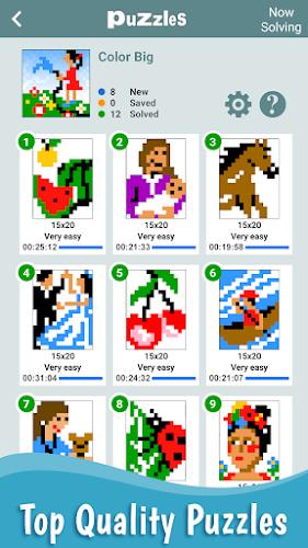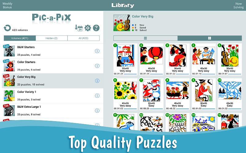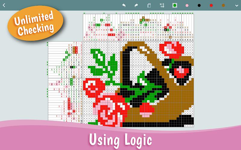 Introducing Pic-a-Pix: Nonogram Color, the ultimate pixel-art puzzle game that will challenge your logic and artistic skills! Solve puzzles by painting squares to reveal beautiful hidden pictures. With over 125 free puzzles in color and black and white, and a bonus puzzle released each week, Pic-a-Pix: Nonogram Color provides hours of intellectually stimulating entertainment. Features like zooming, rulers, and fingertip cursor design make solving large puzzles a breeze. Whether you're a beginner or a puzzle pro, Pic-a-Pix: Nonogram Color offers a wide range of difficulty levels to keep you engaged. Join the millions of players worldwide who enjoy this unique and addictive Japanese logic puzzle game!