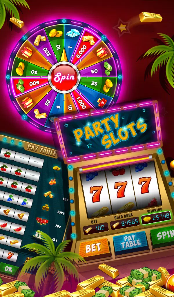 - Spin the fortune wheel and try your luck at the party slots to win big.