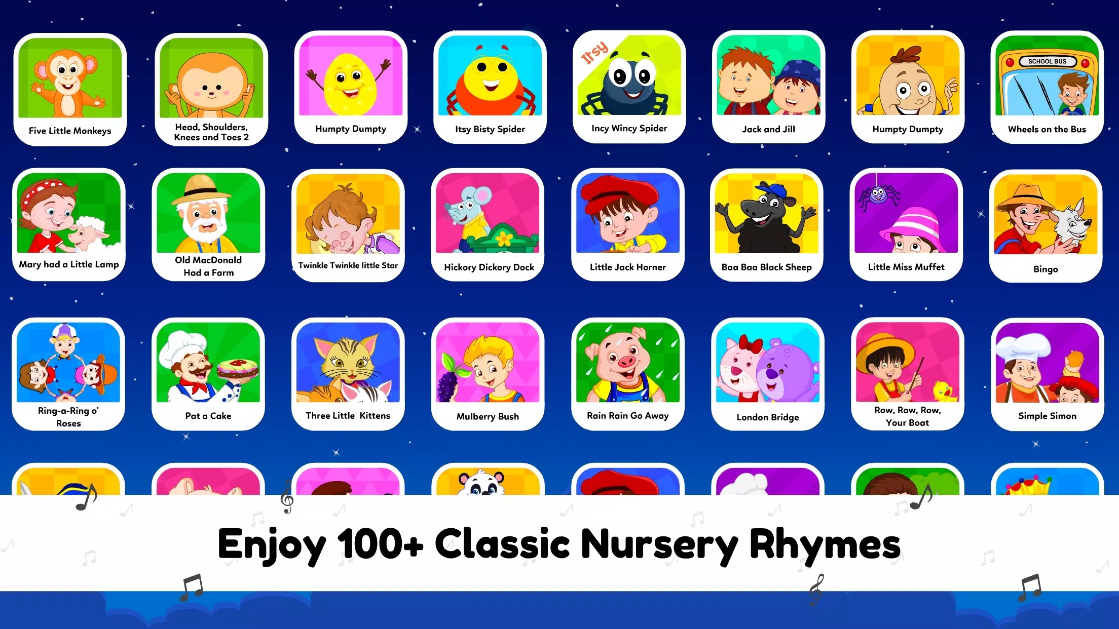 Nursery Rhymes is an educational mobile app designed for young children to learn classic songs, rhymes, and interactive stories. The app combines colorful animations, playful sounds, and simple touch-based interactions to make learning fun and engaging. Nursery Rhymes helps children improve language skills, memory, and rhythm while enjoying familiar and entertaining songs.