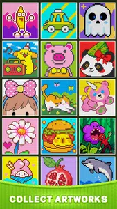 * Colorful Visuals - Dive into a world bursting with vibrant colors and stunning pixel art creations that come to life as you progress through the game.