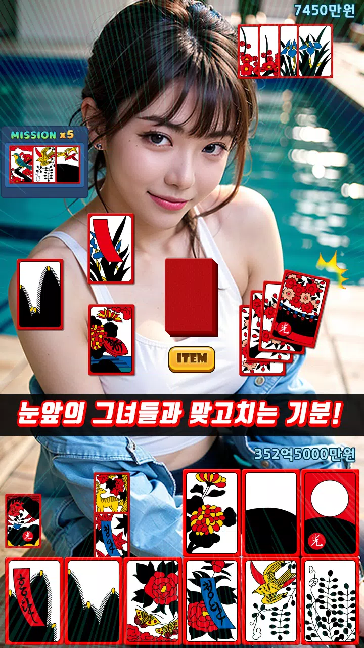 Introducing 베이글녀 맞고, a thrilling mobile game where you can compete against bagel girls from all over the world! Challenge yourself to win game money at GoStop and collect exclusive items. With hundreds of global models to play against, each victory unlocks new challenges and model photos for your own gallery. Donate your winnings to climb the donation ranking and receive up to 20 matching items each time. Enjoy smooth paddle movements, fast hits, and various voices for a truly immersive experience. Play offline anytime, anywhere without worrying about data - it's time to test your skills and have fun with 베이글녀 맞고!