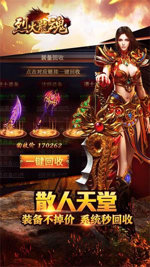 烈火龙魂这是一款非常经典的传奇游戏,游戏在玩法上简直是神还原,完美复刻。在这个热血刺激的恢弘战场上厮杀,点燃你的传奇热血。而且各种打宝,升级pk应有尽有,更有多元化的社交领域,不仅在玩游戏的过程当中驰骋沙场,还可以在线交友呢。
