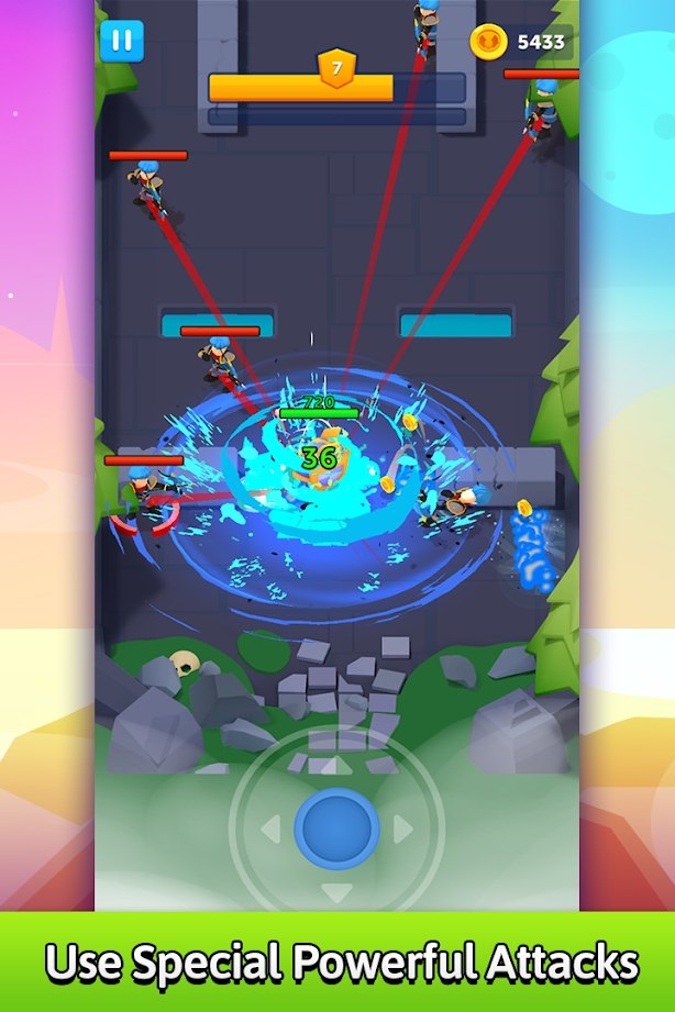 这款游戏将冒险和射击的玩法相结合,精致的画面和各种华丽的特效,极大的满足你的视觉需求,各种各样的武器等你来装备,消灭敌人后可以获得大量的经验,对自己的武器进行升级获得更高的战斗力,带着你的武器前往敌人的大本营里救出公主殿下吧!