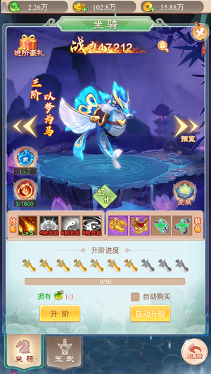 2.羽翼进化系统,在玩家进入游戏之后可以获得一个初始羽翼,通过不断的提升可以进化自己的羽翼,变得更加炫酷。