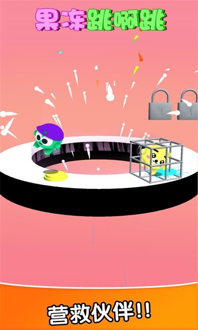 1.您需要控制快速移动的果冻来跳跃,在正确的时间跳跃,避免吃金币的障碍,营救您的朋友;