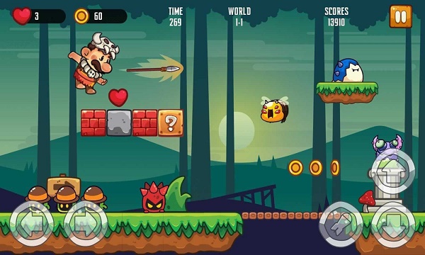 野人冒险游戏的操作非常的简单且容易上手,就算是玩家都可以轻易掌握。具有卡通的游戏画面,有趣的同时增加了游戏的趣味性,这里有着丰富的关卡等待着玩家来挑战,穿越各种障碍体验游戏带来的不同乐趣。