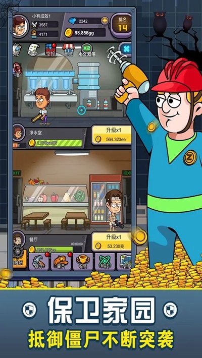 建造避难所玩法非常的简单,你需要不断的建造和升级避难所,让更多的幸存者得到庇护,同时还能够经营你的商店来赚钱,带给你无比放松的游戏体验感,玩起来特别的简单有趣。