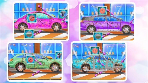 超级汽车清理和维修游戏所展示出来的画面非常卡通,五颜六色的画面可以让玩家迅速的进入游戏当中,里面有很多汽车维修的知识,你都可以进行学习,在以后的生活当中会有很大的帮助,极其简单,只需要快速的浏览一遍,就可以直接上手来玩。