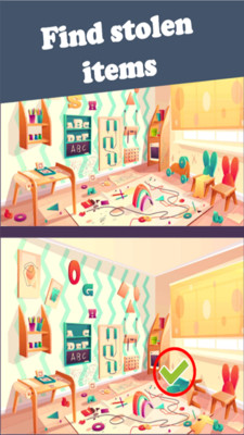 侦探先生谁是小偷是一款非常考验玩家眼力的游戏,游戏将提供两个场景,玩家要从两个场景中分辨出之间的细微差距,还要在规定的时间内找到答案,只有完美通过关卡可以获得一次提示的机会,但是不要点击错了,否则会扣除你的时间。