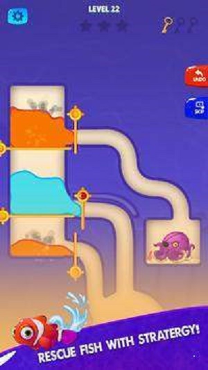 在这款游戏当中,玩家可以拥有丰富的游戏体验,在挑战的同时非常考验玩家的逻辑能力,通过自己的智慧将小鱼解救出来,适合所有年龄段的玩家进行体验,清爽的游戏界面,给玩家带来最舒适的视觉感受,还可以让自己的心情得到放松。