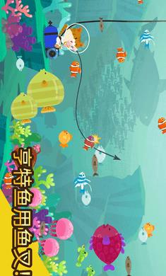 2.玩家需要钓取很多的小鱼来换取金币,升级道具,从而钓取更多更大的鱼。