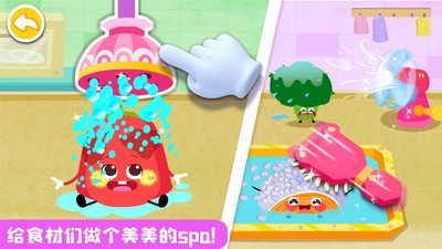3.通过洗菜,切菜和做饭等操作进行互动,让宝宝可以认识多种不同的食材。