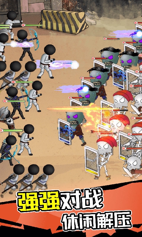 僵尸激斗火柴人是一款非常有趣的动作射击类游戏,在这一款非常唯美的僵尸大战中,你可以自由地拥有超级无敌的火柴人角色,也可以自由地利用自己超级强大的大脑来开启一系列的排兵布阵模式,可以利用一些巧招来快速的击败更多的僵尸,让自己获得最终的胜利。