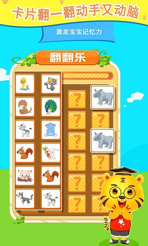开心记忆是一款休闲益智类游戏,所有的玩家在这个游戏里都可以轻松的认识非常多的可爱小动物们,同时游戏中所有的关卡设置也特别的具有意思,轻松的帮助玩家锻炼自己的大脑记忆力,游戏中还有特别多不同的动物玩家在游戏中要准确的认识。