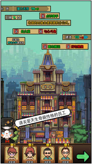这款游戏画面非常的有趣,以经典的像素风为主题,文字剧情为主要玩法,给你带来独特的游戏时刻,化身为小店老板的你,需要引进各种杂货来吸引顾客上门购买,不断发展小店的规模,成为远近闻名的大老板吧。