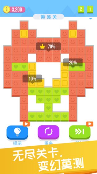 2.方块的颜色更是让玩家眼前一亮,容易堆积。