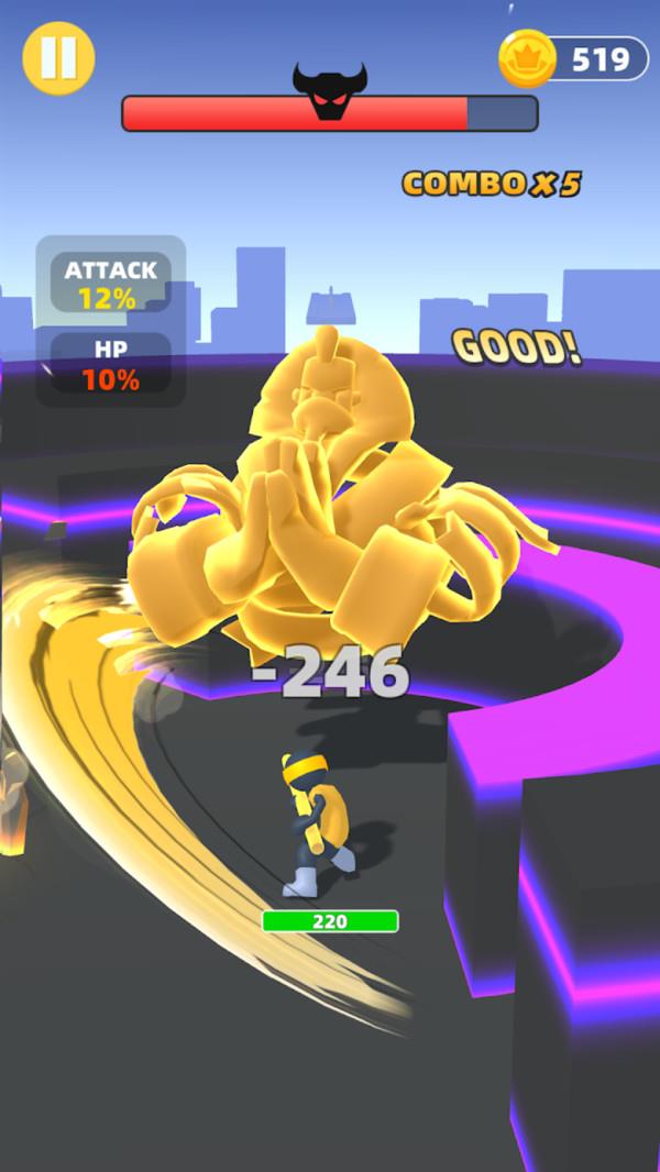 毁灭一击是一款好玩的闯关类游戏,玩家需要操控游戏内的角色进行一系列的跑酷闯关的挑战,发挥灵巧的技术和完美的操作躲避障碍物,并淘汰对手,最终获得游戏的胜利。非常的时候休闲娱乐的时候玩耍,它虽然操作十分简单,但是更要考验玩家的眼力,需要集中注意力才能够顺利过关,还可与好友比拼,一起玩耍更加有意思,感兴趣的朋友,快来下载和我一起体验吧。