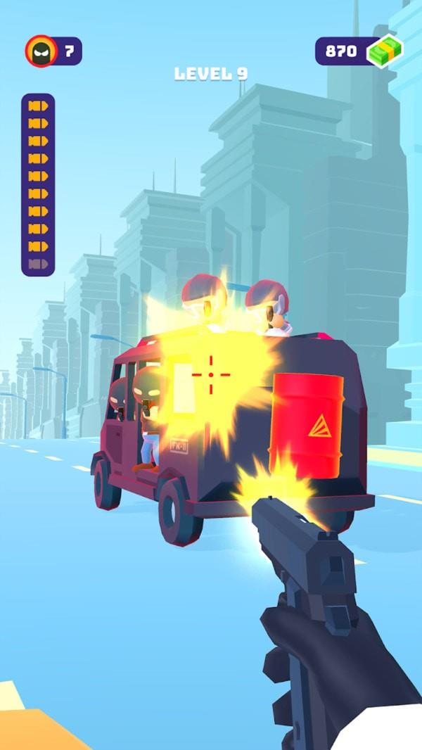 1.但是玩家可以在机器人上使用的弹药非常有限,挑战你的眼力和枪法,大量关卡可以挑战,还可以解锁各种类型的枪支。