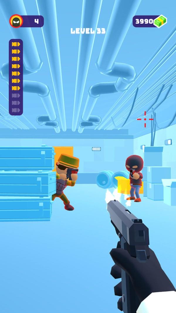 游戏控制制自己的角色来进行各种翻动以及各种跑动来躲避敌人的子弹,快速消灭对手并对手进行射击,一发子弹直接干爆你的目标吧。也可以有障碍赛模式进行比赛。玩家将会在一个屋子中对手将会在各种障碍之后向你进行开枪,你需要精准地射击。
