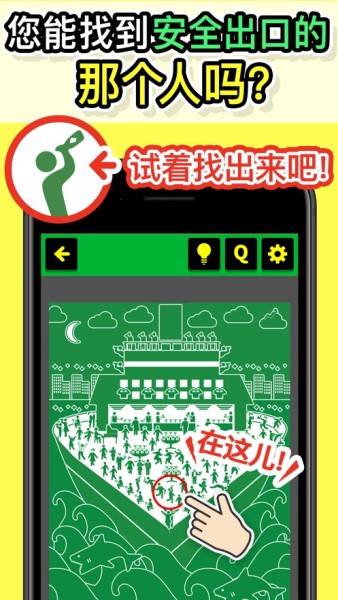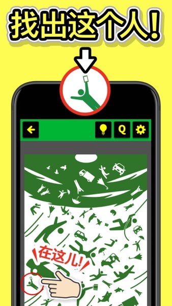 2、玩家需要擦亮自己的眼睛,在超多的人群中找到关卡指定的小绿人,并将他圈起来;
