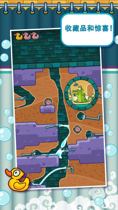 1.帮助小鳄鱼到不同的关卡中进行闯关,解锁更多更大的澡盆。